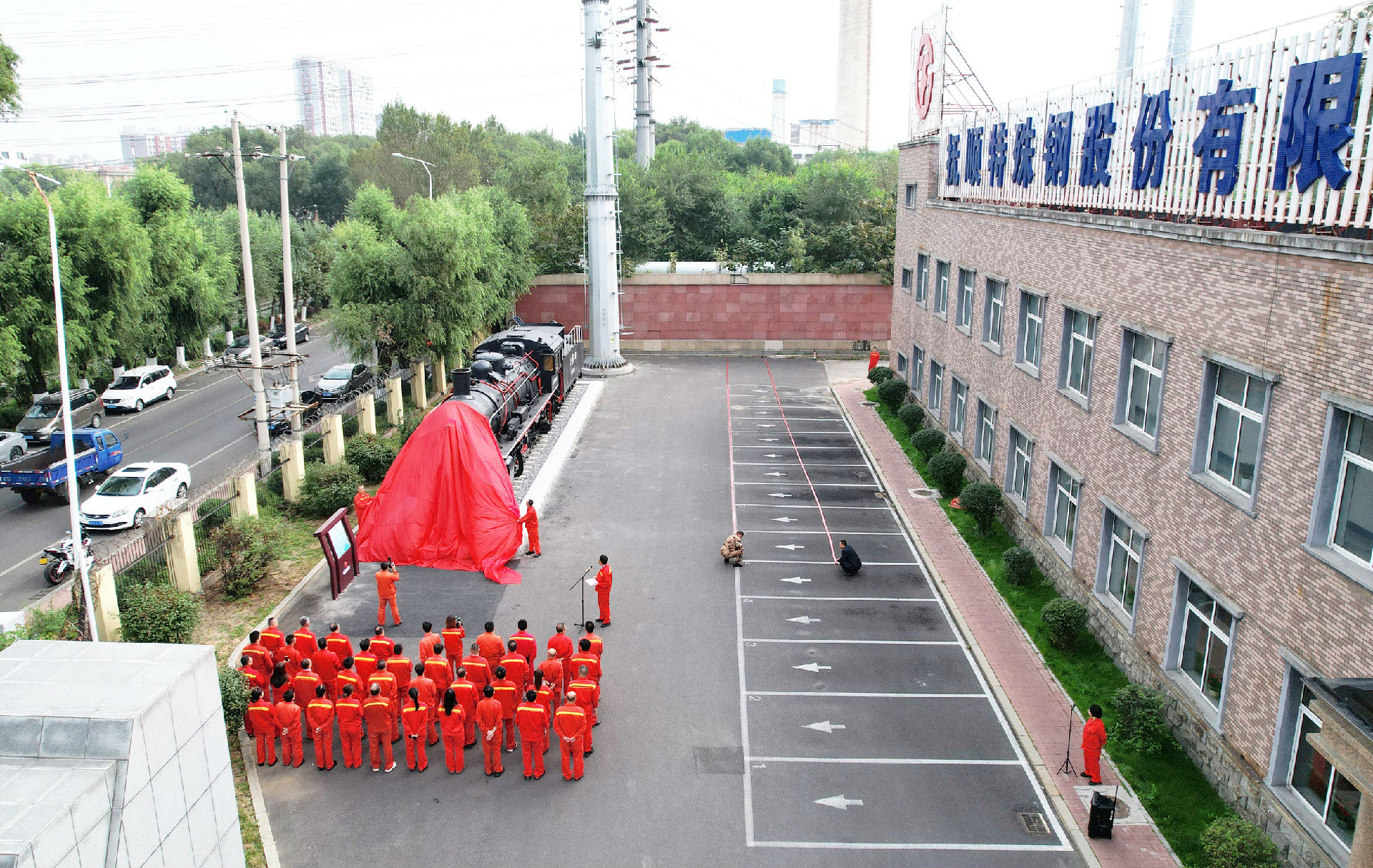 9月29日上午9時(shí)08分,撫順特鋼在辦公樓北側(cè)隆重舉行蒸汽機(jī)車(chē)文創(chuàng)項(xiàng)目落成揭幕儀式。撫順特鋼第一副總經(jīng)理穆立峰,常務(wù)副總經(jīng)理、黨委副書(shū)記、紀(jì)委書(shū)記、工會(huì)主席祁勇以及各單位員工代表50余人參加揭幕儀式。公司工會(huì)副主席、組織人事處處長(zhǎng)朱志勇主持揭幕儀式。