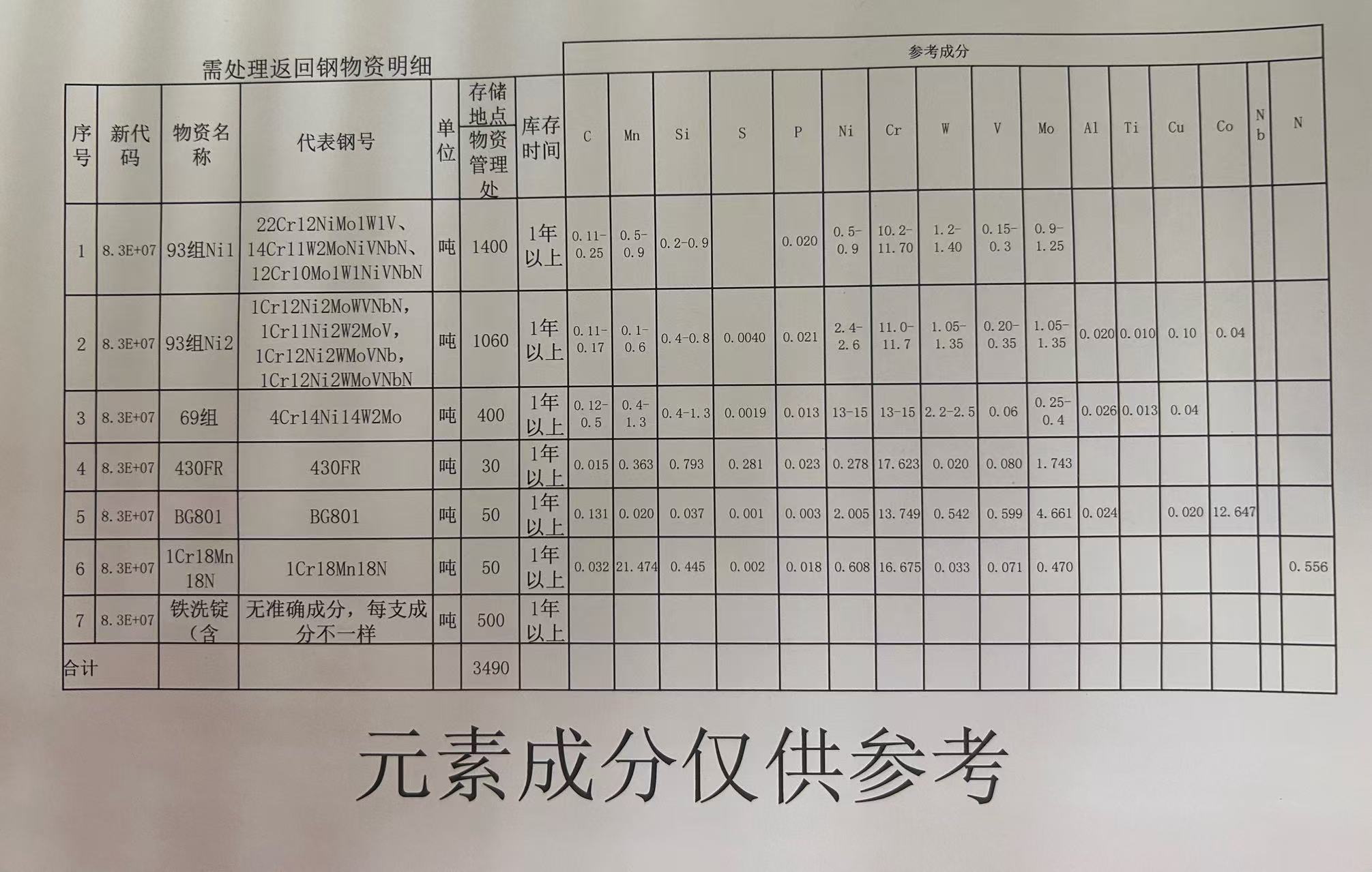 撫順特鋼銷售公司廢舊物資、副產(chǎn)品競(jìng)價(jià)銷售項(xiàng)目公告(11月5日-11月11日)